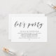Modern Black Script themed, wedding elopement invitation card (Let's party). It is perfect for your wedding elopement reception / post wedding celebration party. Add your details in matching black font / lettering.