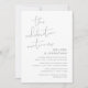 This is the wedding elopement party invitation card, with minimalism / minimalist dark grey script design (The Celebration Continues)