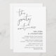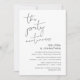 This is the wedding elopement party invitation card, with minimalism / minimalist script design (The Party Continues)