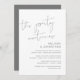This is the wedding elopement party invitation card, with minimalism / minimalist dark grey script design (The Party Continues)