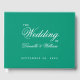 A simple wedding book with a modern colour, emerald green, and elegant white calligraphy.