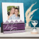 YOUR PHOTOGRAPH PHOTO: Use the template feature to easily change out the stock photo that is included in the preview. COLOR PALETTE:  plum purple, black and white.  You can custom colour this design by using the "customise this" button.  Then look for the "edit" drop down.  Select "background" and select a background or use a custom hex# for any colour in the rainbow.  We can help you match a colour.  Just email us using the email button under the picture. DESIGN: Modern, chic, fashion orientated chevron stripes make this photo plaque a wonderful gift for your favourite couple.  Use an engagement photo and you can make a plaque for your sign in table at your wedding, or for your head table!  Or after the wedding, make a thank you gift for your parents and his.  New baby or family photograph - each will be wonderfully treasured in this elegant and beautiful design.  CUSTOM DESIGN AVAILABLE:  We can custom design this in any colour to match your wedding, just send us a sample of the colour you would like via email.  See the email button below the product picture.