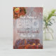 Wooden background with photos of chicken wings at top and barbecue ribs at bottom on front. Includes customisable text on front and back of card -templates are at right. Reverse side has a smokey, dark background with photo of ribs at bottom. Enjoyable engagement party barbecue invitation.