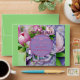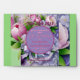 Beautiful & Elegant, Boquete of Pink & Violet Peonies with Satin Violet Bow at Bottom, surrounding A (Violet) Circle Horizon, topped with "Our Wedding" & "Date", on Layered (Two Shades at Top) Violet background.