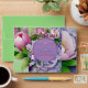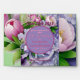 Beautiful & Elegant, Boquete of Pink & Violet Peonies with Satin Violet Bow at Bottom, surrounding A (Violet) Circle Horizon, topped with "Our Wedding" & "Date", on Layered (Two Shades at Top) Violet background.
