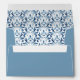 These elegant envelopes feature the word "Wedding" in white over a dusty blue background. The envelope opens to reveal an ornate watercolor blue pattern. Use the template fields to add your custom return address. To see the matching suite visit www.zazzle.com/dotellabelle
