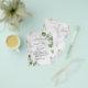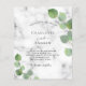 Marble print as background decorated with eucalyptus greenery, sprigs. Personalise and your name and ceremony details.