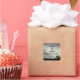 This beautiful wedding sticker features a photo that captures an evening landscape with the sun's rays breaking through the grey and white clouds. The land appears in black silhouette along with the branches of a distant tree. The sunlight creates diagonal lines across the two-tone sky. The bride and groom's name and wedding date appear in black script and can quickly be personalised.