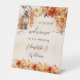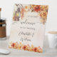 A welcome sign for a fall wedding. A rose gold, blush pink gradient background. Decorated with a vintage lantern and orange flowers. Personalise and add a date and your names.
