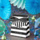 What a wonderful, personalised Party Favour Box for a Wedding or other special occasion. This Favour Box is decorated with a pattern of black and white stripes. On the front, Names and Event Date in white. A black ribbon completes the festive look. A modern, elegant, and chic Wedding Favour Box. All Rights Reserved © 2015 Alan & Marcia Socolik.