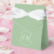 This wedding favour box features simple monogram over a sage green background. Use the template fields to add your custom information. To see the matching elegant wedding stationery suite visit www.zazzle.com/dotellabelle