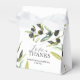 This wedding favour box features watercolor olive branches with the words "Love & Thanks" set in trendy typography. Use the template fields to add your name and wedding date or custom details. To see more greenery wedding stationery visit www.zazzle.com/dotellabelle