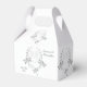 Wedding favour box dragonflies heart design. Customise this silver coloured favour box with your wedding details. Should you require any help with customising then contact us through the link on this page. Silver coloured heart and dragonflies design personalised wedding favour box