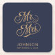 Wedding Favour Mr & Mrs Elegant Script Name Modern Square Paper Coaster
