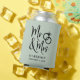 Give a wedding toast and your wedding guests a fun souvenir keepsake of your special day with this custom sage green can cooler with "Mr & Mrs" written in a large script and an illustration of two wedding rings joined together. Add your name and wedding date.