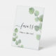 White background. Decorated with watercolored eucalyptus greenery. With the text: Favours, please take one!