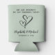 Give a wedding toast and your wedding guests a fun souvenir keepsake of your special day with this custom light sage green can cooler with two hearts joined together in the middle. You can personalise "Sip, Sip, Hooray! We Got Married Today" to something similar in length. Add your first names and wedding date below.