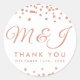 Elegant wedding Favour Tag design with Rose Gold Faux Glitter Confetti White motif, custom names and date text.
