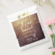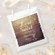 Wedding Favour Bag, Shower Treats Favour Bag Templates - Elegant Lettering Script, Vintage Champagne Glasses and String Lights on Rustic Wood Background.
