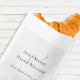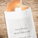 This design features an elegant floral blush wedding candy favours greenery favour bag, with a stylish trendy calligraphy script party paper favour bag, with simple minimalist calligraphy ampersand lettering, wedding bride and groom names, a simple white flower leaves foliage, a wedding party reception treat favour, a wedding guest cookies bars desserts, a simplistic elegance rust earth tones, a minimalist minimal classic traditional, a creative stylish wedding décor.