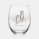 Wedding floral bird Monogram Elegant Simple Minima Stemless Wine Glass