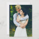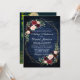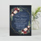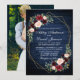 Wedding Floral Blue Wood Photo Back Gold Geometric Invitation