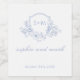 Wedding Floral Crest Monogram Dusty Blue Wine Label