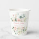 Beautiful floral personalised script bridal shower, wedding paper cup. Lovely pink pastel watercolor flowers and eucalyptus. Personalise this with your names and the date. Absolutely beautiful. Complete your wedding or bridal shower table ensemble with this pretty personalised paper cup.