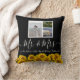 Wedding floral |Chic Sunflower Elegant black and white Script Wedding Photo collage wedding pillow, featuring a frame over a collage of 3 of your photos.