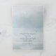Nautical net with white and blue floral arch on an abstract watercolor ocean background for newlyweds.