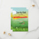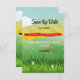 Festival theme green fields and Sunshine Save the Date card.