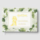 This guest book is shown in a layout for a wedding with a lovely white hydrangea floral print and real gold foil accents.