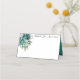 This folded name place card is shown in basic white with a lovely teal colour peony floral mix accent and has sample custom names.