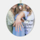 A stylish modern holiday photo ornament with a bold retro typography quote "merry & bright" in white. The greeting, name and year can be easily customised for a personal touch. A trendy, minimalist and contemporary design to stand out this holiday season! The image shown is for illustration purposes only to be replaced with your own photo.