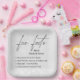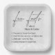 Fun trivia facts about the couple on white heart design for wedding reception.