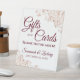 This pretty tabletop sign is designed to make it easy for your wedding guests to know where to leave their gifts and cards. It features a simple yet elegant design with script burgundy lettering and lacy rose gold faux foil frills on a classic white background. The sign reads: Gifts and Cards Thank you so much! There is room for your names and the wedding date below.