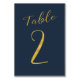 Faux gold foil formal calligraphy script wedding reception table card. The navy blue background colour is editable. You can change it after pushing CUSTOMIZE button.