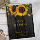 Rustic country sunflower wedding planner featuring strings of twinkle lights and big sunflowers on a dark brown barn wood background. It can be a beautiful bridal shower gift for the bride.