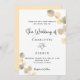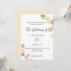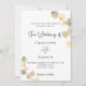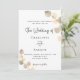 A white background decorated with golden eucalyptus sprigs. Personalise and your name and ceremony details. Black coloured letters.