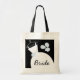 Pretty bridal themed canvas bag in shades of blue featuring a stylised wedding gown and flowers on a black background. A customisable design for you to personalise with your own text, pictures and ideas. Artwork created by Jess Perry.