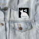 Pretty bridal themed button badge featuring a stylised wedding gown and flowers in shades of blue, black and white. A customisable design for you to personalise with your own text, pictures and ideas.