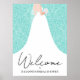 Wedding Gown Bridal Shower Turquoise Welcome Poster