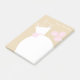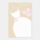 Bridal themed post-it notes with a pretty design in shades of pink, beige and white featuring a stylised wedding dress on a hanger accompanied by a bouquet of flowers. A customisable design for you to personalise with your own text, pictures and ideas.