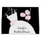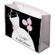 Pretty bridal themed gift bag in shades of pink featuring a stylised wedding gown and flowers on a black background. A customisable design for you to personalise with your own text, pictures and ideas.
