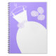 Pretty bridal themed notebook in shades of purple featuring a stylised wedding gown and flowers on a purple background. A customisable design for you to personalise with your own text, pictures and ideas.