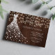 White shiny diamonds wedding dress on a dark brown barn wood background with strings of twinkle lights making a modern elegant rustic inspired bridal shower invitation.
