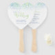 Wedding green blue dabs modern watercolor program hand fan