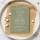 A simple Wedding ceremony program paper sheet template. This botanical elegant green, minimalist program with simple calligraphy script is perfect for any beach wedding, with elegant palm leaves,