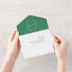 Saturated bright green, silver, and white hand-drawn growing leaf botanical line art oval monogrammed wedding all-in-one invitation. Personalise this detachable reply wedding invitation with your own wedding ceremony details, and add your meal options to your detachable replies. Simple oval leaf design circling your own monogram initials. Other colours and matching wedding items available. © Original leaf drawing and design by Sarah Trett for www.mylittleedenweddings.com on Zazzle.