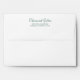 Wedding simple white envelope with deep green reply address text and snow graphic inside. Matches grey green trees wedding collection. Personalise with your own reply address and write your receivers address on the front. Designed by www.mylittleedenweddings.com